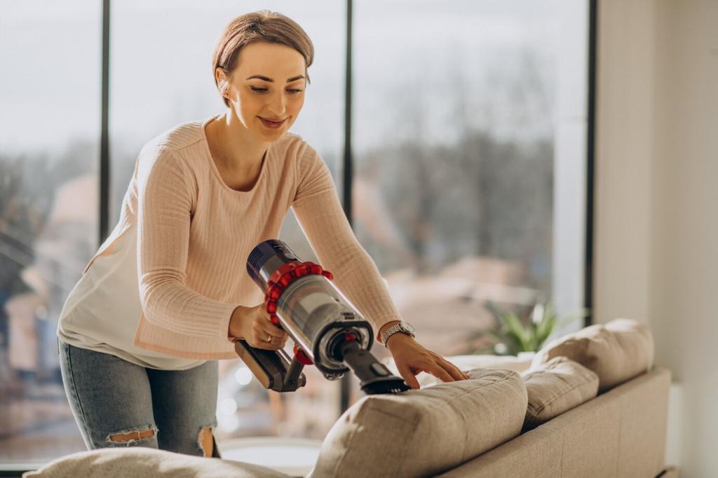 Polstermöbel speichern Staub, Allergene und Gerüche. Umweltfreundliche Verfahren reduzieren flüchtige organische Verbindungen und schonen die Atemwege. Familien berichten von spürbar frischerer Raumluft, weniger Reizungen und besserem Schlaf, wenn auf sanfte, aber effektive Reinigungsinnovationen gesetzt wird.